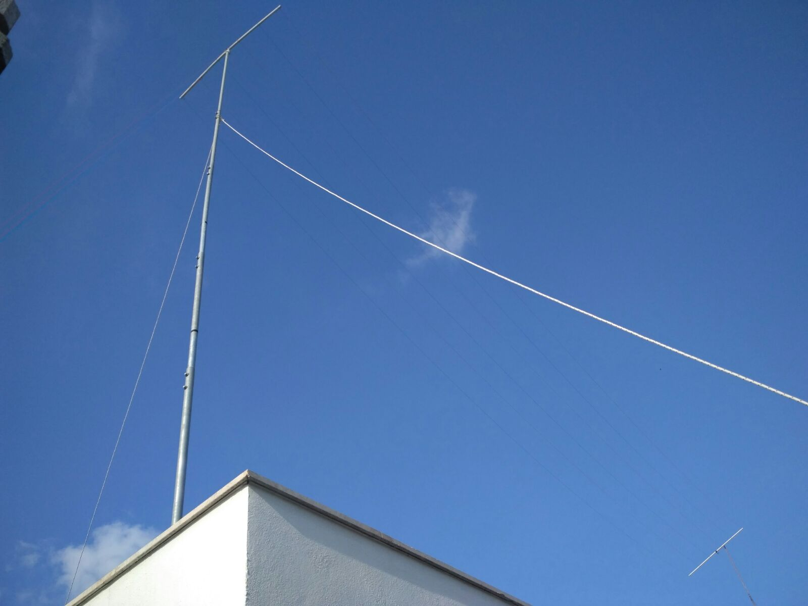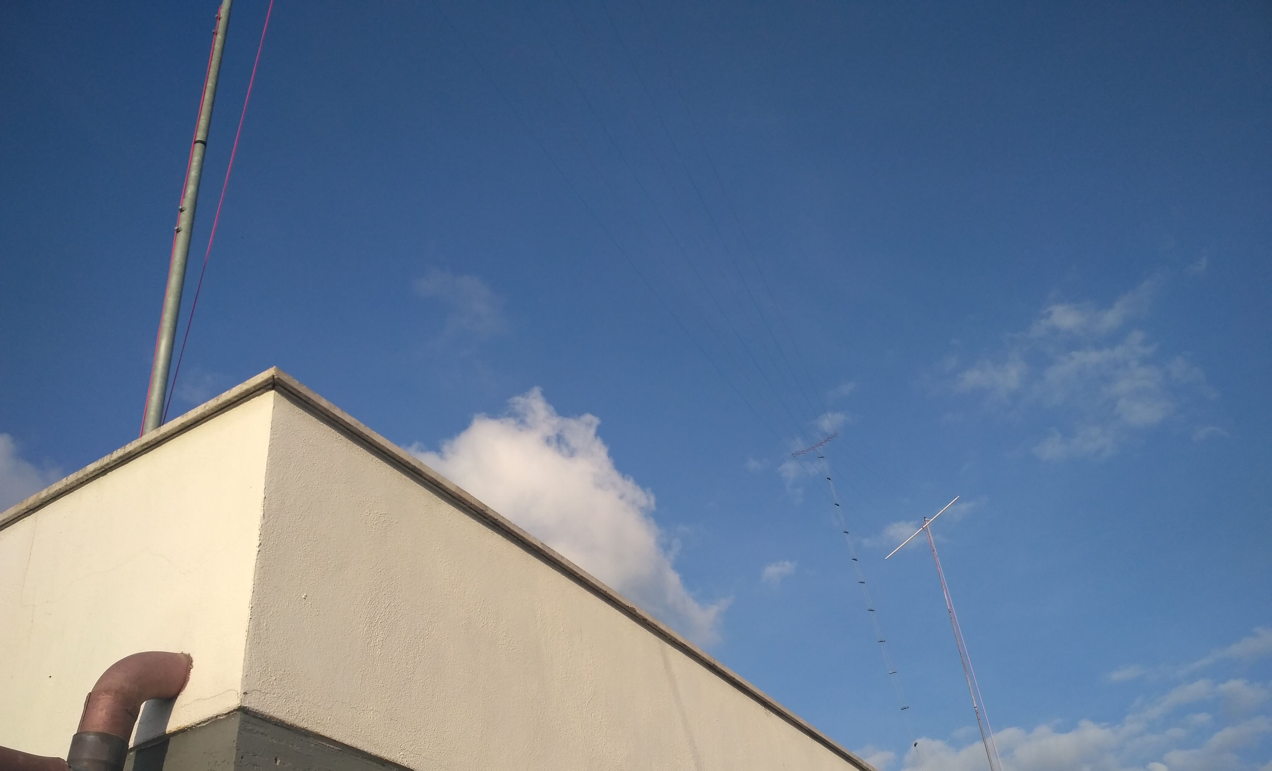 The setup is essentially a “condo-friendly” antenna, provided you have at least twenty meters of terrace. For grounding, I used all available metal structures and a ground rod located two floors below.
